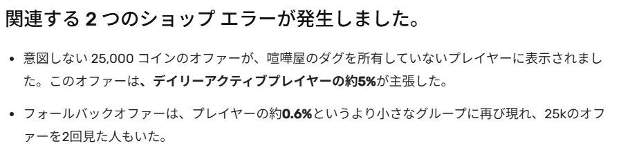 不具合のなかった人に、2,000コインの補償をしているようですが、もう少し他にも対応した方が良かったかもしれませんね。