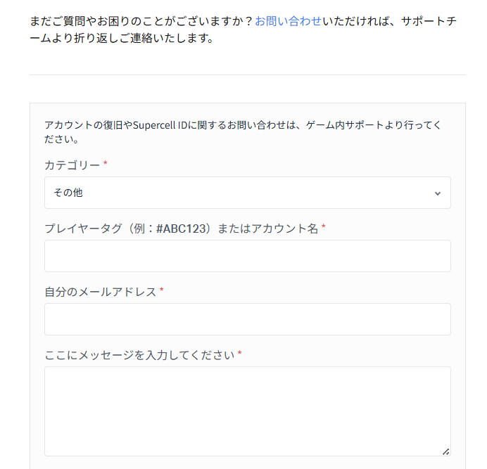 残高がマイナスになる事象に対して、すぐに改善を求める場合、Brawl Starsサポートに問い合わせてみることをオススメします。