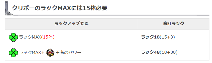 クリボーは、★1のレア度であるため、最大ラックの上限は、★1のラック上限である15体となります。