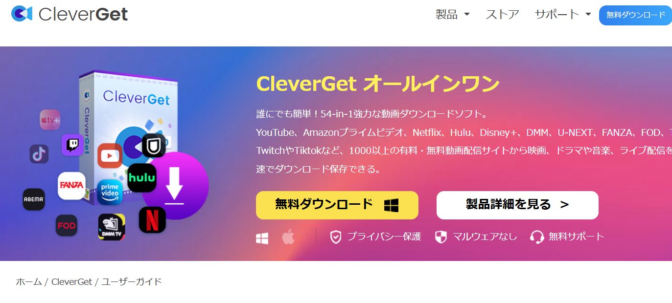 - CleverGet:ダウンロードソフト(3ヶ月無料試用期間あり)
