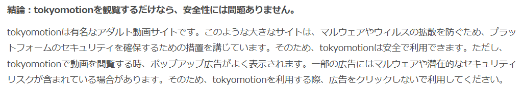 「TokyoMotion」サイトの利用は、閲覧自体は問題ない可能性が高いです。