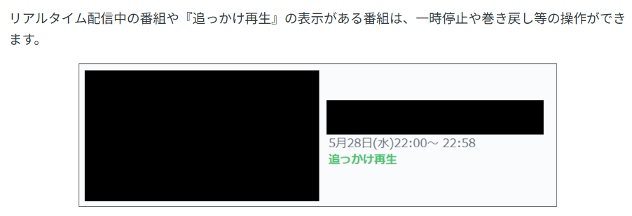 上の画像のように、番組名の下に「追っかけ再生」と表示されている番組のみ対応しています。