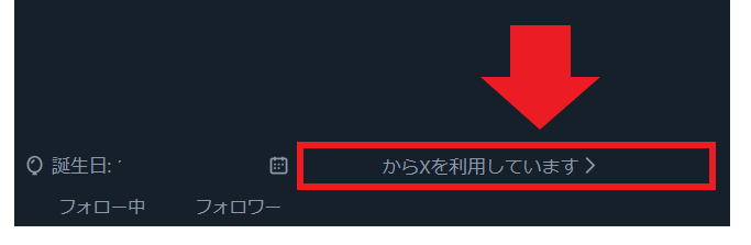 - 誕生日の隣にある「20〇〇年▢月からXを利用しています」をクリック