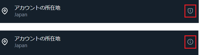 アカウントの所在地の隣に、“盾マーク”のあるものとないものがあります。